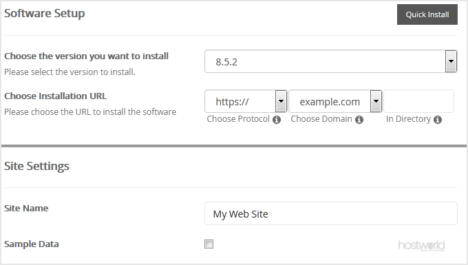 - Choose Installation URL: Choose the appropriate protocol/domain. Inside the “In Directory” field, should you want to install this in a directory, i.e. example.com/directory, enter the directory name. Otherwise, leave it blank to install in your main domain, i.e. example.com